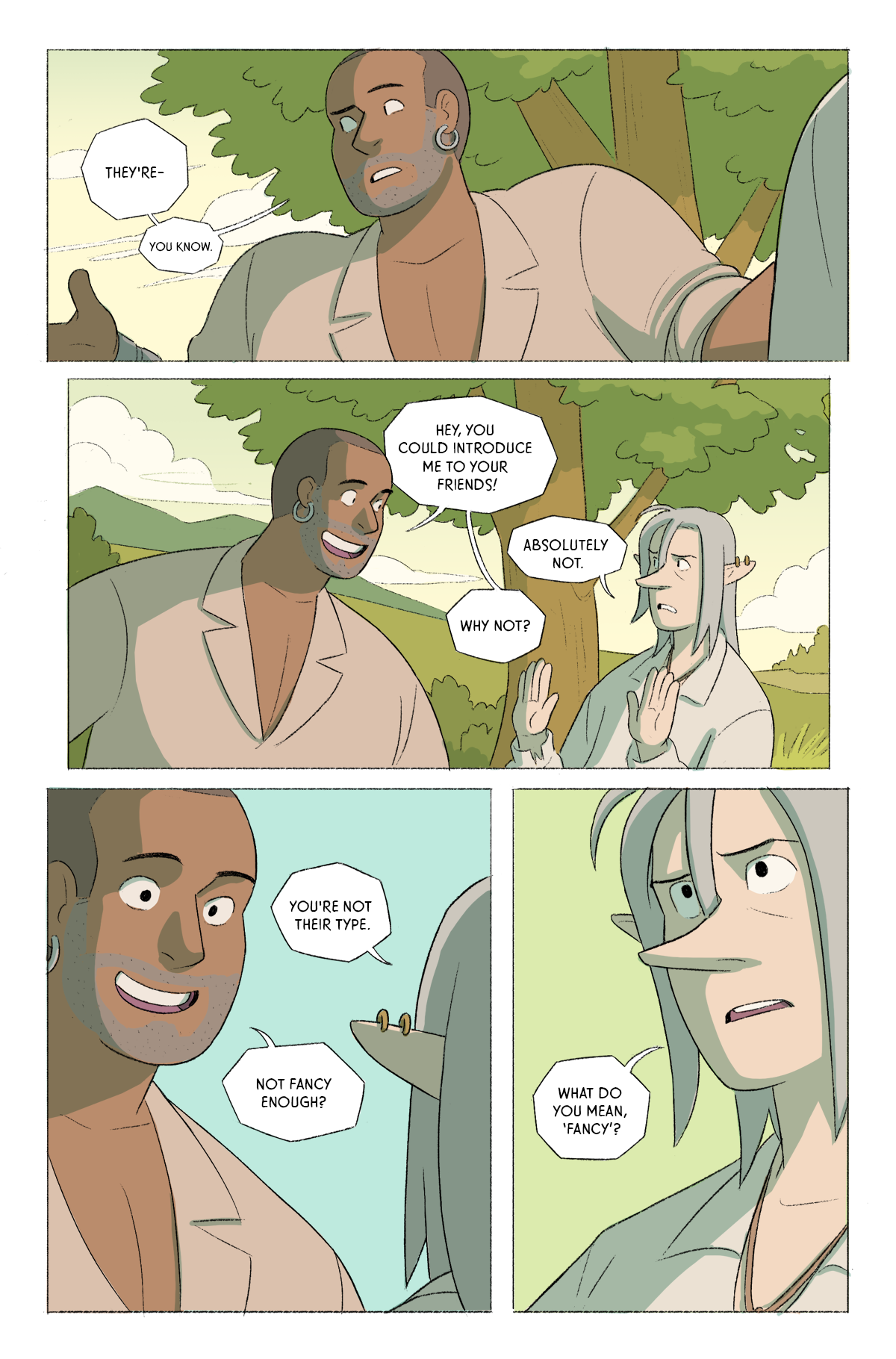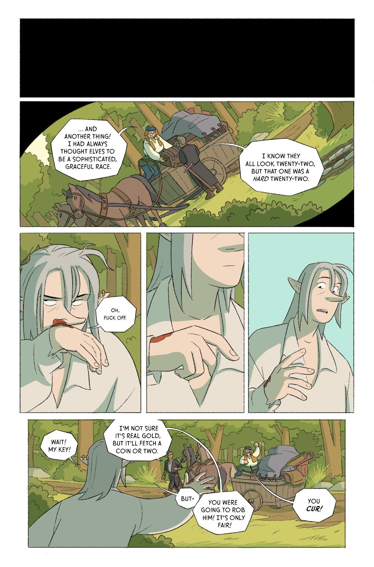 Aluin and Iluri have made it off the mountain, but working together proves more difficult. (24 pages, chapter two.)